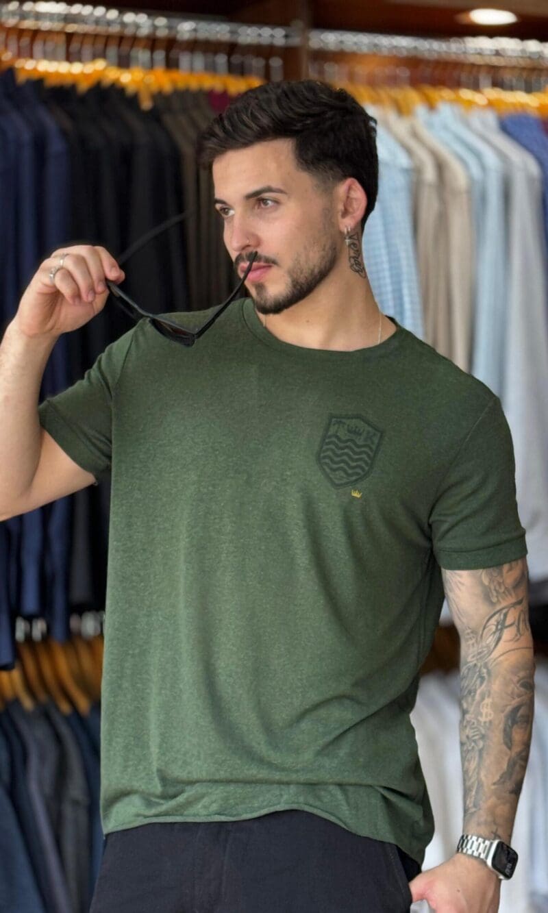 T-SHIRT LIGHT LINEN BRASÃO MC – VERDE PALMEIRA OSKLEN