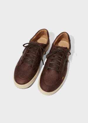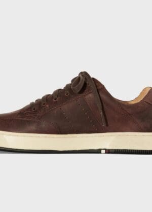 Tênis Soho em couro bovino com visual envelhecido. Modelo de amarração com cadarço de algodão. Forro e palmilha em couro bovino. Solado de borracha costurado ao cabedal com design exclusivo Osklen. Resíduos de Re-Design de Produto. A partir do inverno 21 o solado passou a ser produzido com no mínimo 10% de material reciclado.